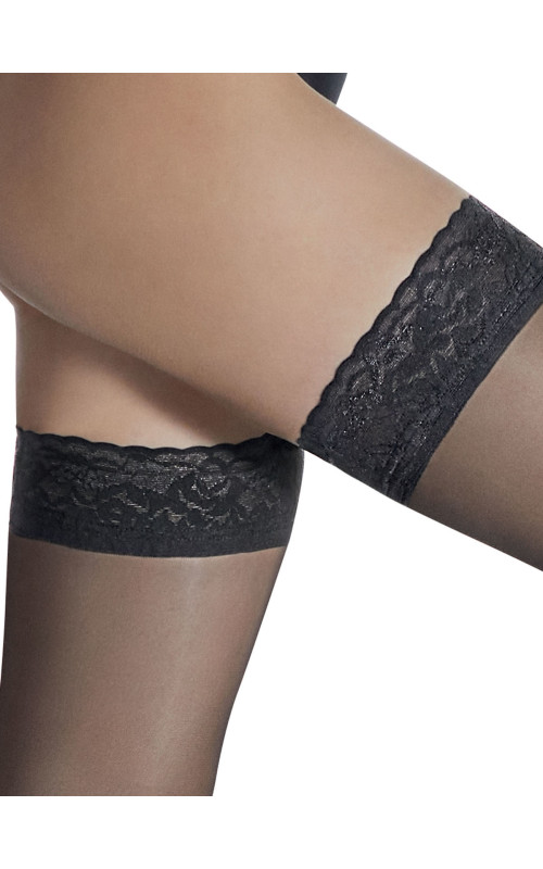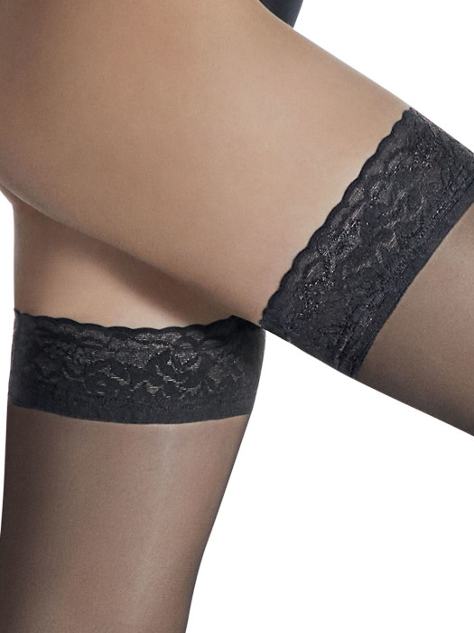 Эластичные тонкие элегантные чулки с изящной кружевной резинкой на силиконовой основе, прозрачные, с гладким шелковистым эффектом. Чулки с узкой кружевной резинкой, полностью формованные, для удобства одевания и наилучшего комфортного облегания, с прозрачным укреплённым мыском.