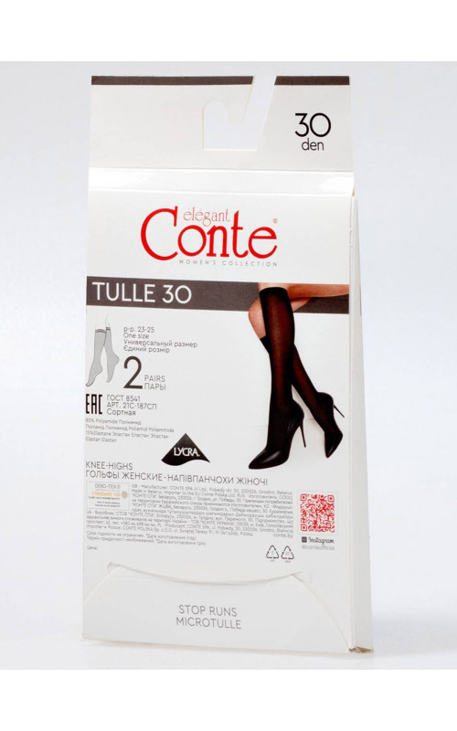 Эластичные прозрачные гольфы с эффектом тюля. Тюлевая структура гольфов улучшает практичность (стойкие к затяжкам и зацепкам). Гольфы не формованные, с прозрачным мыском.
