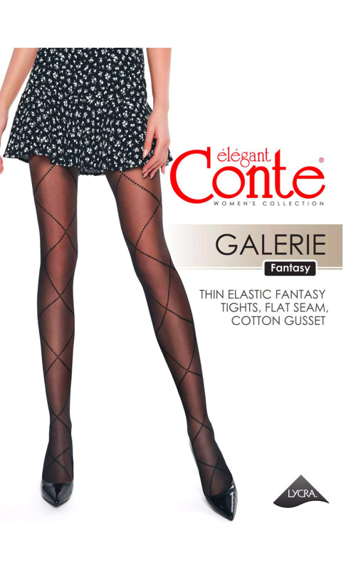 Колготки CONTE GALERIE 20 из серии FANTASY - это исключительный продукт, который заслуживает особого внимания. Благодаря уникальному дизайну с пересекающимися диагональными линиями, образующими ромбы, эти колготки привлекают взгляды и подчеркивают индивидуальный стиль каждой женщины. Эластичные и тонкие, они обладают гладким шелковистым эффектом, который придает неповторимую изящность вашим ногам. Колготки с классической посадкой на талии и однородными по всей длине - без шортиков, что делает их идеальным выбором для повседневного ношения. С удобной шириной пояса-резинки в 3.0 см и гигиенической ластовицей из хлопка, эти колготки обеспечивают комфорт и уверенность в любой ситуации. Комбинация прозрачного мыска, плоского соединительного шва и неформованного дизайна делает их идеальным выбором для тех, кто ценит стиль, качество и удобство. Не откладывайте - приобретите колготки CONTE GALERIE 20 прямо сейчас в магазине Мир Чулок.РУ и почувствуйте себя неповторимо красивой и женственной!