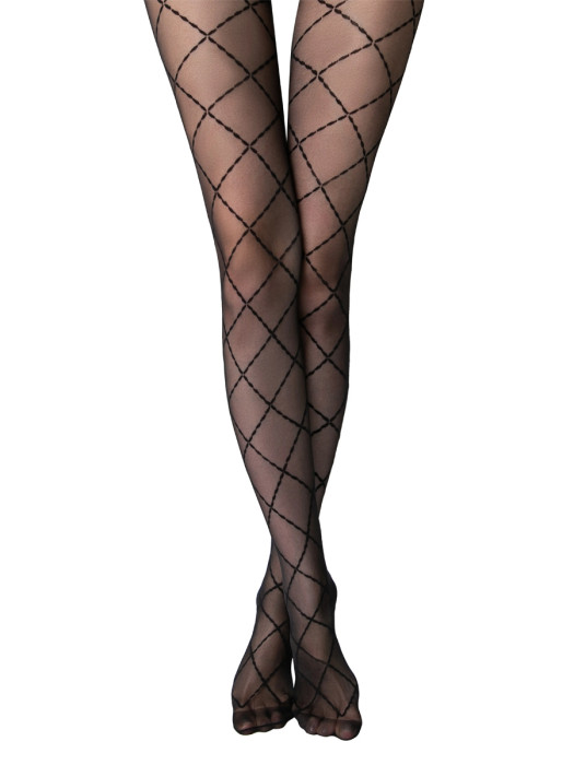 Эластичные тонкие элегантные колготки CONTE MIRAGE 20 с геометрическим рисунком в виде пересекающихся диагональных линий, образующих ромбы. Прозрачные, с гладким шелковистым эффектом. Колготки с классической посадкой, однородные по всей длине, с гигиенической ластовицей из хлопка, с комфортным плоским соединительным швом, не формованные, с прозрачным укрепленным мыском.