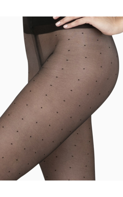 Эластичные, тонкие, элегантные колготки с рисунком "мелкий горошек", по всей длине, прозрачные, с гладким шелковистым эффектом. Колготки с классической посадкой, однородные по всей длине, с гигиенической ластовицей из хлопка, с комфортным плоским соединительным швом, не формованные, с прозрачным мыском.