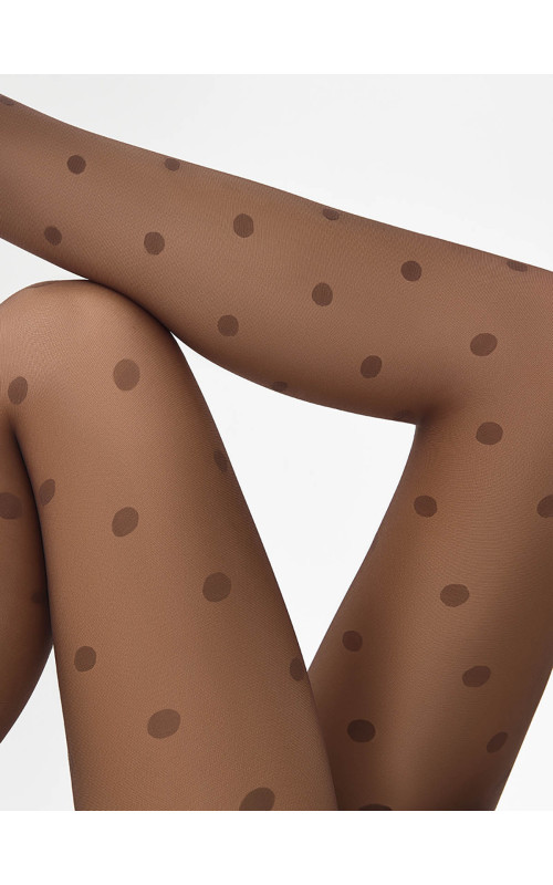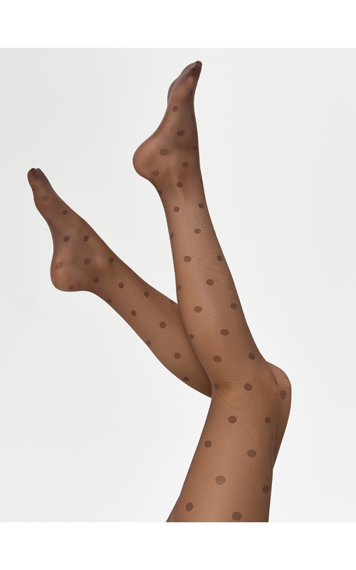 Тонкие фантазийные колготки "в горошек" с широким комфортным поясом, х/б ластовицей, плоскими швами и невидимыми усиленными мысками. Отсутствие шортиков позволяет сочетать колготки с короткими платьями, юбками и шортами, а невидимый мысок отлично смотрится с открытой обувью — туфлями и босоножками.