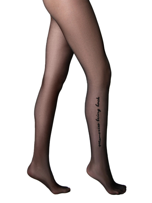 Эластичные элегантные колготки CONTE MEMORIES 30 с оригинальным рисунком (имитация тату) в виде контрастной надписи - «Memories bring back». Прозрачные, с гладким шелковистым эффектом. Колготки с классической посадкой, однородные по всей длине, с гигиенической ластовицей из хлопка, с комфортным плоским соединительным швом, не формованные., с прозрачным укрепленным мыском.