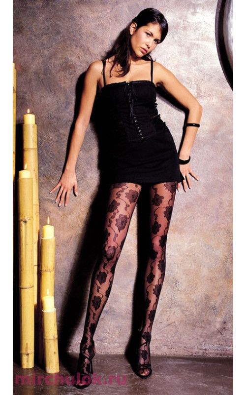 Фантазийные колготки на тюлевой основе с крупным цветочным рисунком.