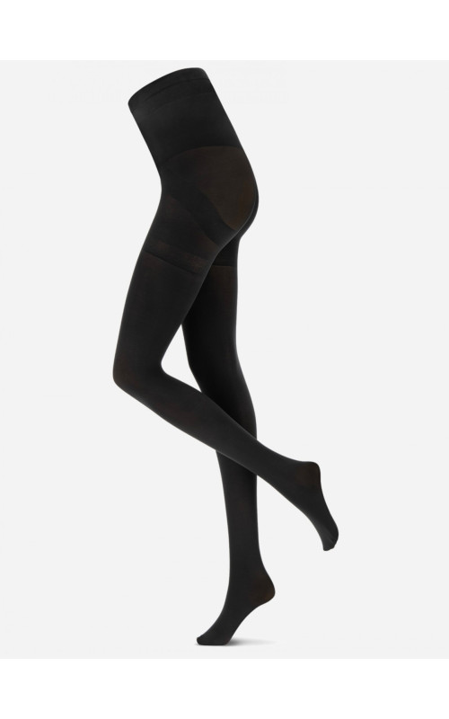 Плотные непрозрачные эластичные колготки из microfibra с корректирующим эффектом, с высокой посадкой под грудь. С верхней частью в виде упругих шортиков со специальными вставками, создающие хороший реальный корректирующий эффект от бедра до груди. Придают стройность в области талии, уменьшают объем бедер, делают более плоским живот, приподнимают ягодицы (push up эффект). Колготки с гигиенической ластовицей из хлопка, с комфортным плоским соединительным швом, с очень широким поясом-резинкой и специальной эластичной частью для лучшего удержания, формованные.