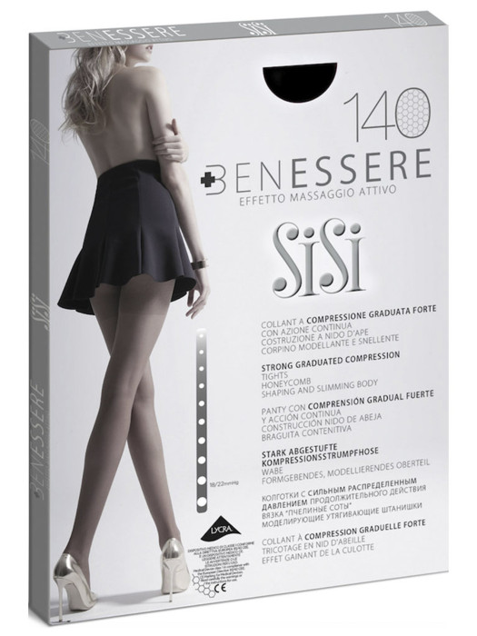 Компрессионные колготки, профилактического назначения. Полупрозрачные, с микросетчатой структурой вязки. Специально распределенное давление по ноге - большее внизу ноги (в области щиколотки) и ослабевающее к верху. Максимальная степень компрессии 15-17 мм.рт.ст. Колготки с верхней частью в виде шортиков, с комфортным поясом, с комфортным плоским соединительным швом, формованные, с вывязанной укрепленной зоной пятки, с укрепленным мыском.