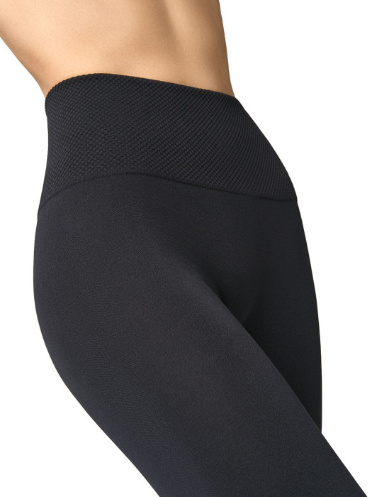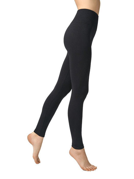 Легинсы имеют классическую посадку на талии и полную длину, достигающую до щиколотки. Они однородные по всей длине и обладают комфортным очень широким поясом шириной 12,0 см, который обеспечивает идеальную посадку и не скатывается. Бесшовный дизайн в части торса без центрального соединительного шва добавляет комфорта и элегантности.