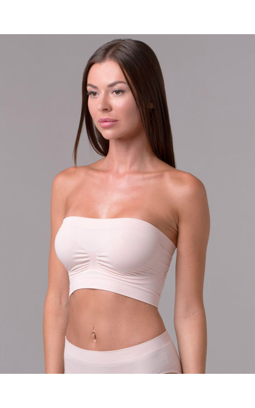 Бесшовный топ-бандо с рельефными вставками, которые обеспечивают поддержку бюста размеров B, C, D. Выполнен из мягкой микрофибры.