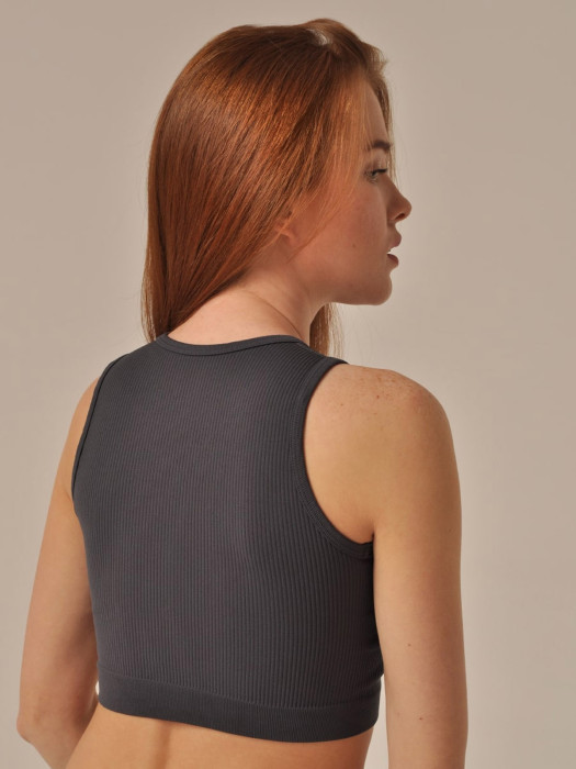 Топ в рубчик с вырезом халтер, выполнен из мягкой фактурной микрофибры. Специальная бесшовная технология позволяет изделию идеально облегать тело, полуприлегающий силуэт подчеркивает фигуру. Материал изделия не вызывает раздражений и не накапливает внешние аллергены. Не мнется и не требует глажения.