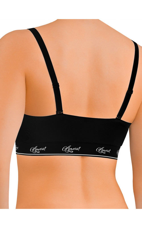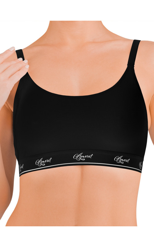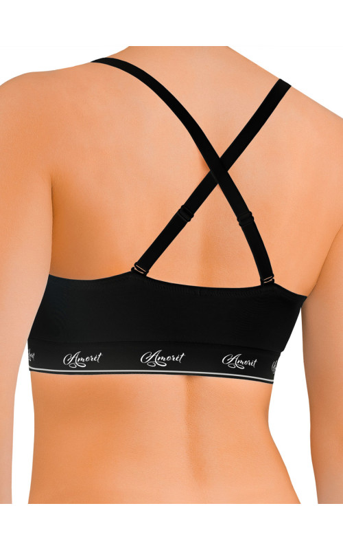 Топ в повседневном стиле AMORET GLAM Top1031 черного цвета, выполнен из деликатного хлопкового полотна. Передняя деталь из двойного полотна для дополнительной поддержки груди, швы скрыты, что обеспечивает максимальный комфорт. Спинка из одинарного полотна. Бретели можно носить как классическим способом, так и перестегнуть крест-накрест. Декор – брендированная резинка в цвет изделия. Купить топ женский AMORET GLAM Top1031 черного цвета в магазине Мир Чулок.РУ