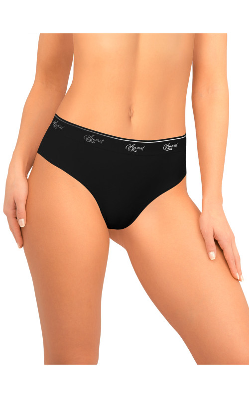 Трусы-бразилиана AMORET GLAM B1034 черного цвета, выполнены из ДВОЙНОГО деликатного хлопкового полотна. Декор – брендированная резинка в цвет изделия.