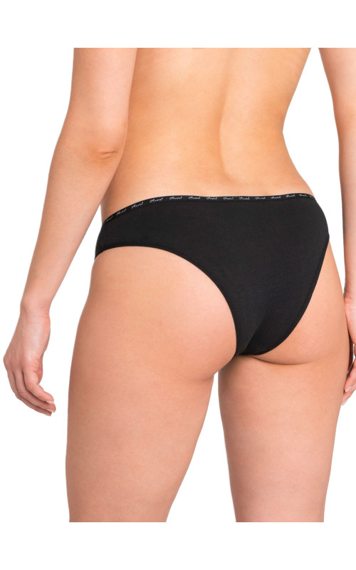 Трусы-бразилиана со средней линией талии, выполнены из однотонного хлопкового плотна. Для обработки талии использована узкая декоративная резинка с контрастным логотипом. Хлопковая ластовица.