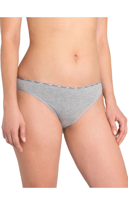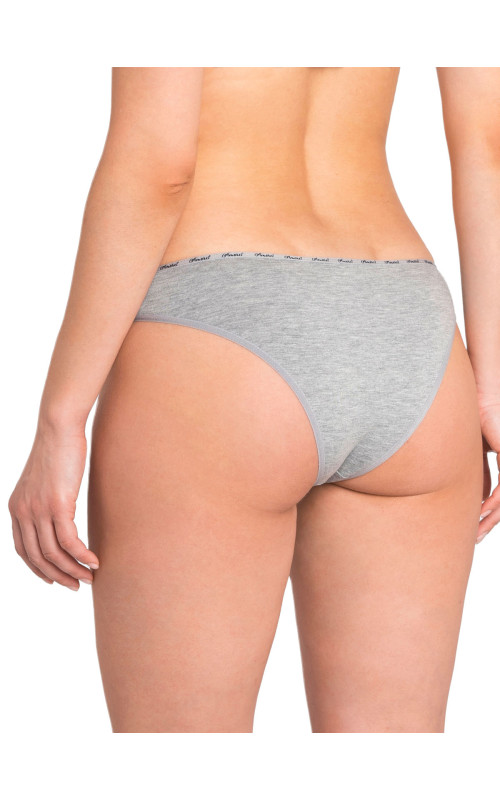 Трусы-бразилиана со средней линией талии, выполнены из однотонного хлопкового плотна. Для обработки талии использована узкая декоративная резинка с контрастным логотипом. Хлопковая ластовица.