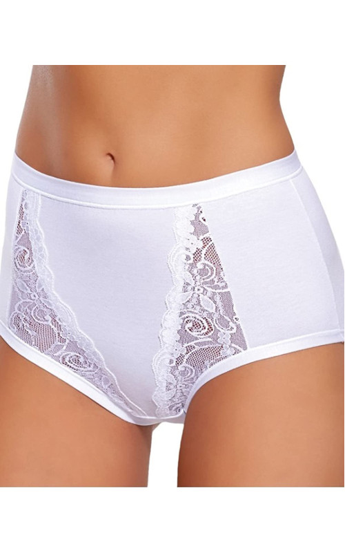 Трусики макси слип с широкой боковой частью, из гладкого хлопка с добавлением модала, с кружевными вставками сбоку, с гигиенической вставкой из хлопка.