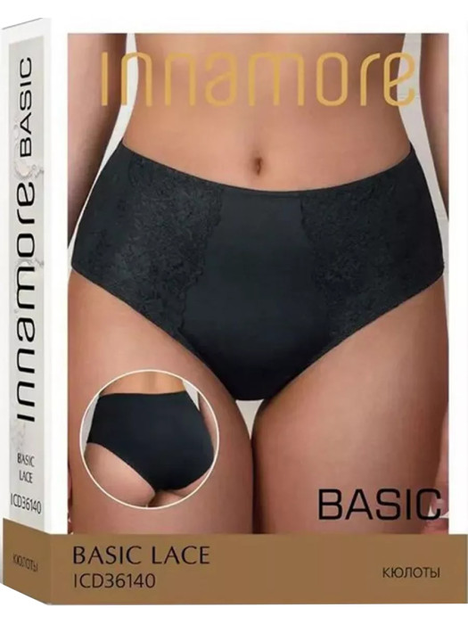 Женские трусы-кулоты (слип макси)  INNAMORE ICD BASIC LACE 36140 culotte с высокой посадкой. Изготовлены из гладкого микроволокна (микрофибра) и вставками из кружева. С гигиенической ластовицей из хлопка. Мягкое приятное кружево позволяет комфортное гигиеничное ношение, добавление эластана улучшает сохранность формы и обеспечивает ношение без лишних складок. Подходят для повседневного ношения. Мало заметны под облегающей одеждой.