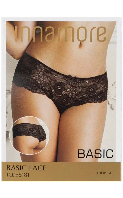 Женские трусы шорты с низкой посадкой INNAMORE ICD BASIC LACE 35181 shorts, с широкой боковой частью. Изготовлены из приятного красивого кружева из нейлона на тюлевой основе. С гигиенической ластовицей из хлопка. Мягкое приятное кружево позволяет комфортное гигиеничное ношение, добавление эластана улучшает сохранность формы и обеспечивает ношение без лишних складок. Подходят для повседневного ношения. Мало заметны под облегающей одеждой.