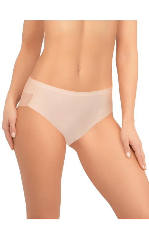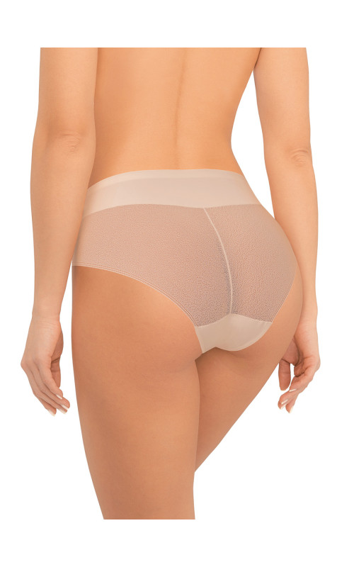 Трусы макси-слип AMORET INVISIBLE LACE MS5043 бежевого цвета с высокой линией талии. Передняя деталь выполнена из мягкой микрофибры, задняя деталь - из тончайшего кружева с сетчатой структурой. Спереди вырез ножки обработан с использованием технологии "лазерный край". Линия талии проклеена вподгибку. Хлопковая ластовица притачана к изделию потайным швом. Благодаря особенностям обработки материалов изделие абсолютно незаметно под одеждой.