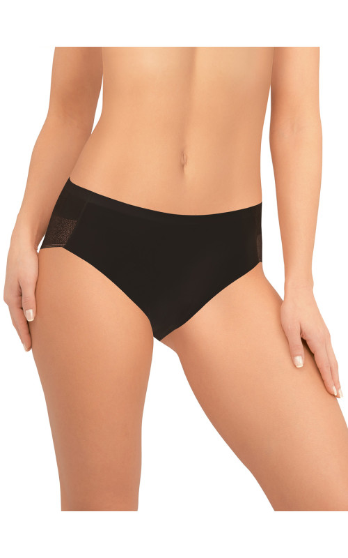 Трусы макси-слип AMORET INVISIBLE LACE MS5043 чёрного цвета с высокой линией талии. Передняя деталь выполнена из мягкой микрофибры, задняя деталь - из тончайшего кружева с сетчатой структурой. Спереди вырез ножки обработан с использованием технологии "лазерный край". Линия талии проклеена вподгибку. Хлопковая ластовица притачана к изделию потайным швом. Благодаря особенностям обработки материалов изделие абсолютно незаметно под одеждой.