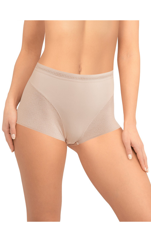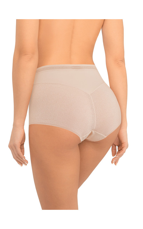 Трусы слипы AMORET MESH HW5041 бежевого цвета с высокой линией талии. Передняя и задняя детали выполнены из микрофибры. Вырез бедра из цельнокройного кружева с сетчатой структурой. Широкая декоративная резинка, использованная для обработки талии, придает изделию ультрамодное звучание. Хлопковая ластовица.