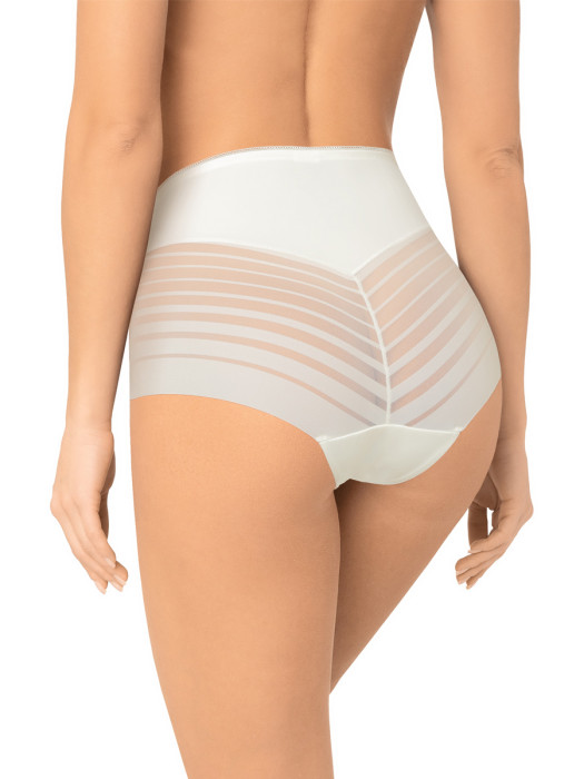 Трусы женские слип-макси AMORET SHADE HW5036 молочного цвета с высокой линией талии. Передняя деталь выполнена из деликатной микрофибры, задняя деталь и вырез ножки - из декоративного полотна с чередующимися полосками разной ширины. По талии пришита деликатная эластичная тесьма. Хлопковая ластовица. В изделии отсутствуют боковые швы, что делает его максимально комфортным и незаметным под одеждой.