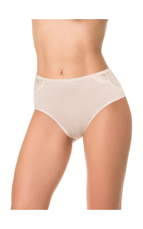 Трусы слипы высокой линией талии, выполнены из деликатного хлопкового полотна. Декор - кружевные вставки на передней детали.