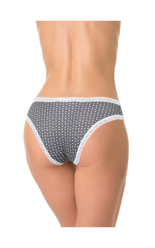Трусы со средней линией талии, выполнены из нежного принтованного хлопка со спандексом. Принт с флористическими мотивами. Вырез ножки и талия обработаны контрастным узким эластичным кружевом. Декор - атласный бантик. Хлопковая ластовица.