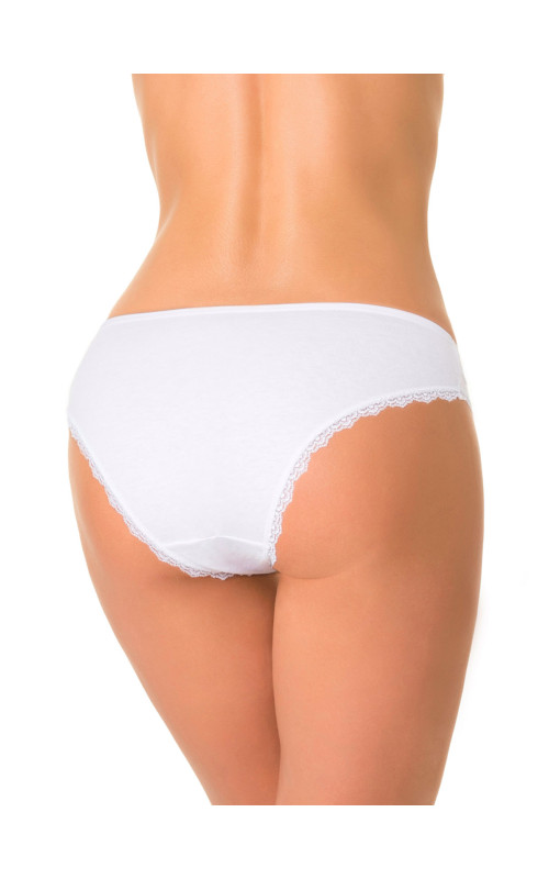 Трусы слипы со средней линией талии, выполнены из мягкого хлопка со спандексом. Ножки обработаны плоским кружевом. Передняя деталь декорирована узким кружевом.