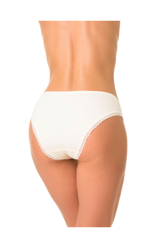 Трусы слипы со средней линией талии, выполнены из мягкого хлопка со спандексом. Ножки обработаны плоским кружевом. Передняя деталь декорирована узким кружевом.