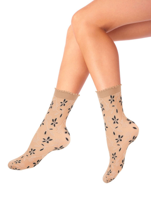 Женские фантазийные носки с контрастным цветочным рисунком. Резинка мягкая и комфортная не перетягивает ногу.