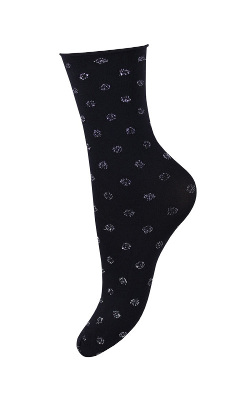 Женские полиамидные носки с эластаном. Со свободной резинкой. Оригинальный дизайн в виде мелкой кляксы вывязанный люрексом.