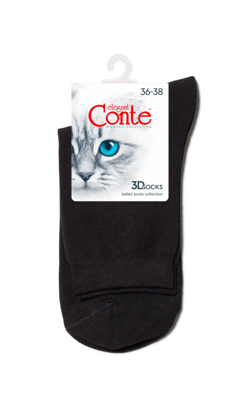 Женские носки классической длины CONTE 3D SOCKS 000, однотонные (без рисунка), всесезонные, изготовленные из мягкой гладкой пряжи хлопка, с добавлением полиамида для лучшей практичности и эластана для лучшей сохранности формы. Традиционный материал хлопок отлично дышит, дает комфортную мягкость, способность хорошо впитывать влагу и гарантирует гигиеничное ношение.
