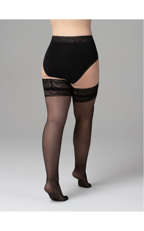 Прочные прозрачные чулки больших размеров. Мягкая элегантная резинка с цветочным кружевом. Использование инновационной технологии Lycra Xceptionelle позволяет достичь максимального комфорта. Идеально облегают фигуру.